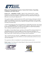 Our team at Elkhart Tri-Went Industrial (ETI) targets difficult manufacturing opportunities that require both engineering and ingenuity. Our proprietary equipment and processes allow for continuous tubular designs and provide our customers with superior solutions. We produce from ISO-9001 certified locations, and supply critical parts for diverse complex OEM applications.